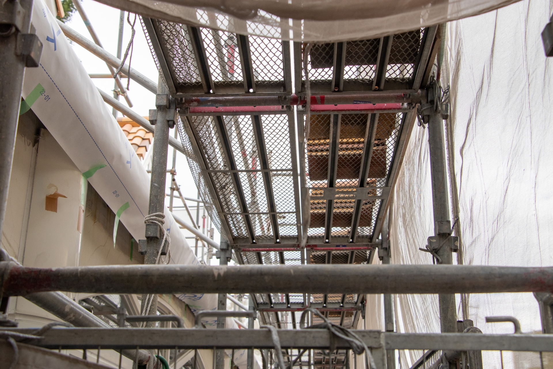 足場にメッシュシートを張るため、窓の開閉は制限される場合があります。