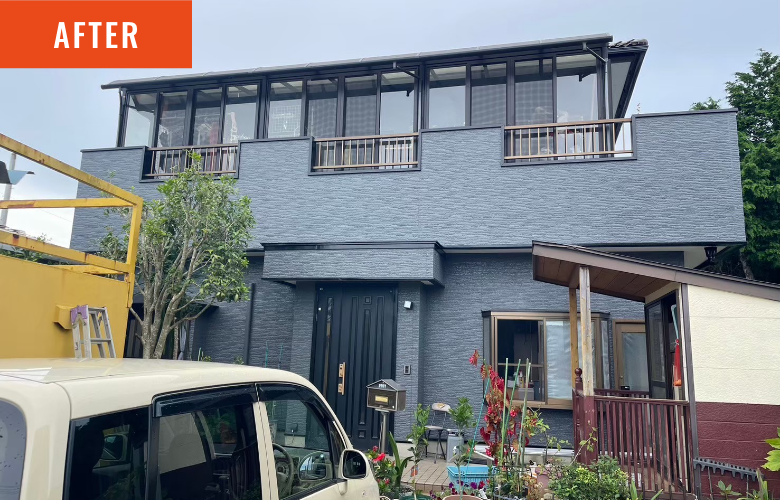 日本ペイントの高耐候塗料《パーフェクトトップ》 ND-013(濃グレー系)で塗り替えました。