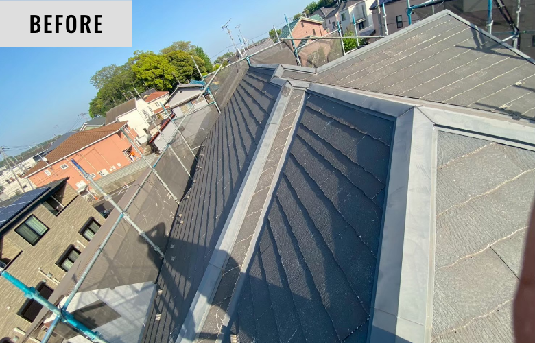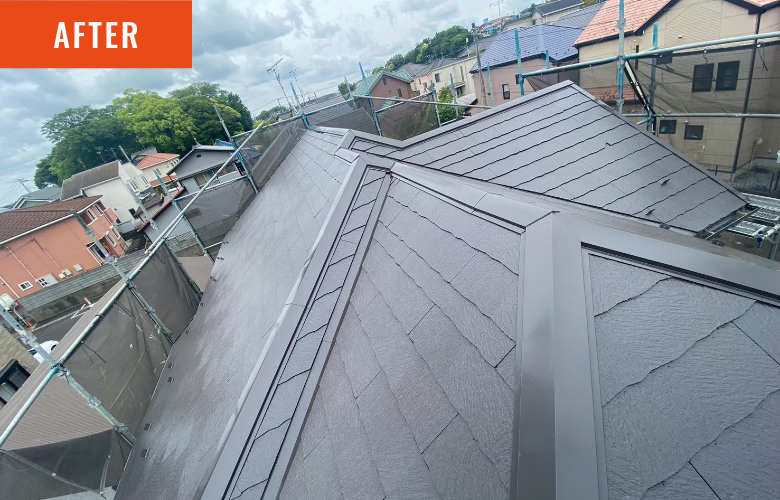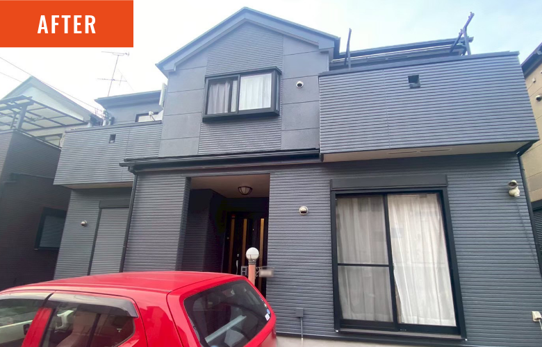 施工者コメント | 経年劣化によって色あせていた外壁と屋根を、 超高耐候型フッ素塗料にて一新し、重厚感と高級感あふれる外観に仕上げました。 外壁には【ファイン4Fセラミック ND-013】を使用。 深みのあるダークグレー系カラーで、引き締まった印象とモダンな雰囲気を演出。 フッ素樹脂ならではの高い耐候性と光沢保持性で、美しさが長持ちします。 屋根には【ファインパーフェクトセラミック ダークチョコレート】を採用し、 重厚感のあるブラウンが外壁と調和し、高級感のある仕上がりに。 紫外線や雨風に強く、屋根の耐久性・防水性も向上しています。 施工後は「まるで建て替えたよう」とお客様にも喜んでいただける仕上がりとなりました。 |