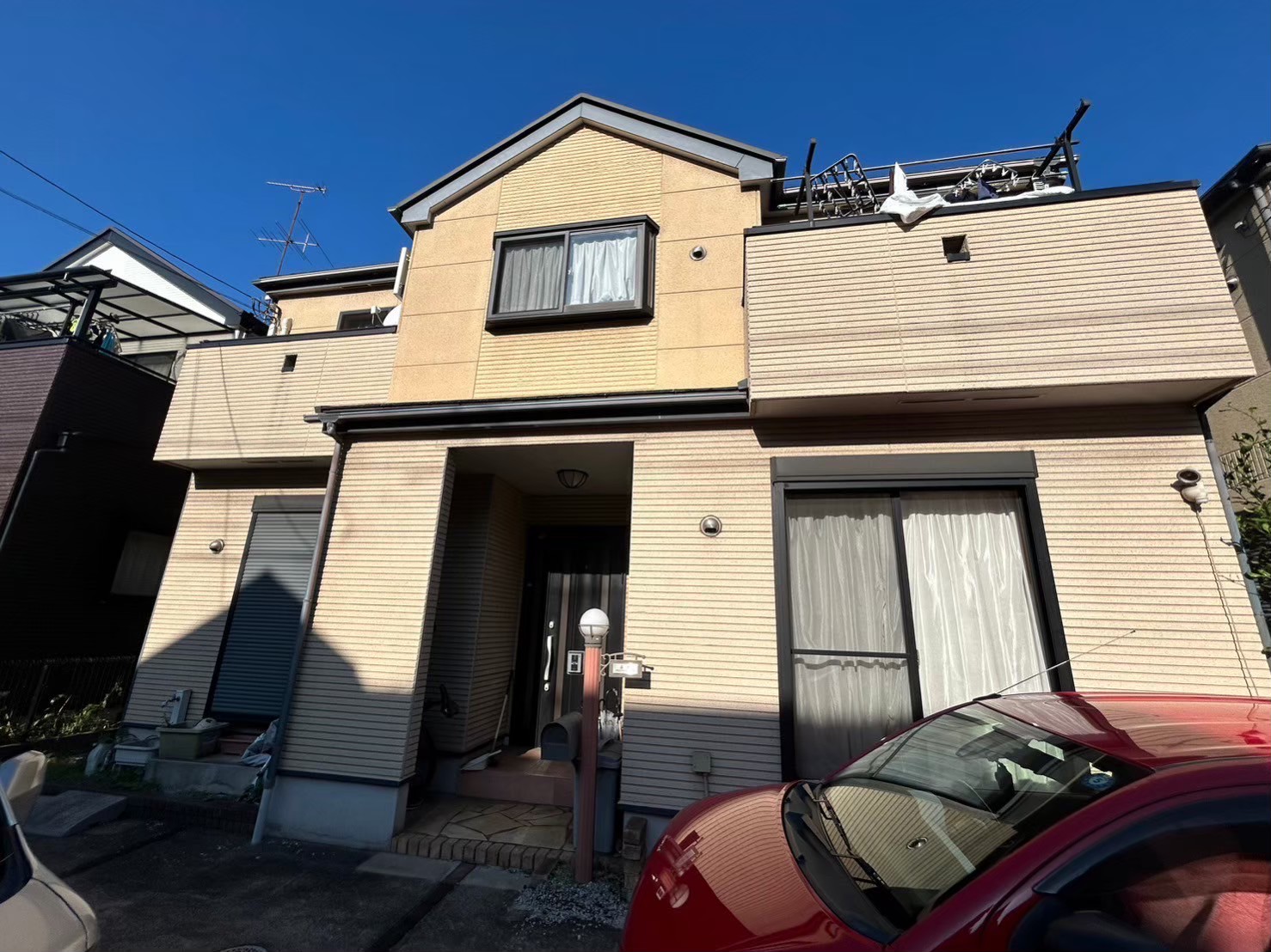 お客様からは、経年劣化により色あせてしまった外壁と屋根を綺麗にしたいとのご相談をいただきました。
