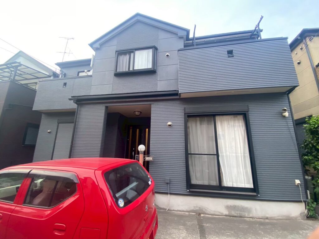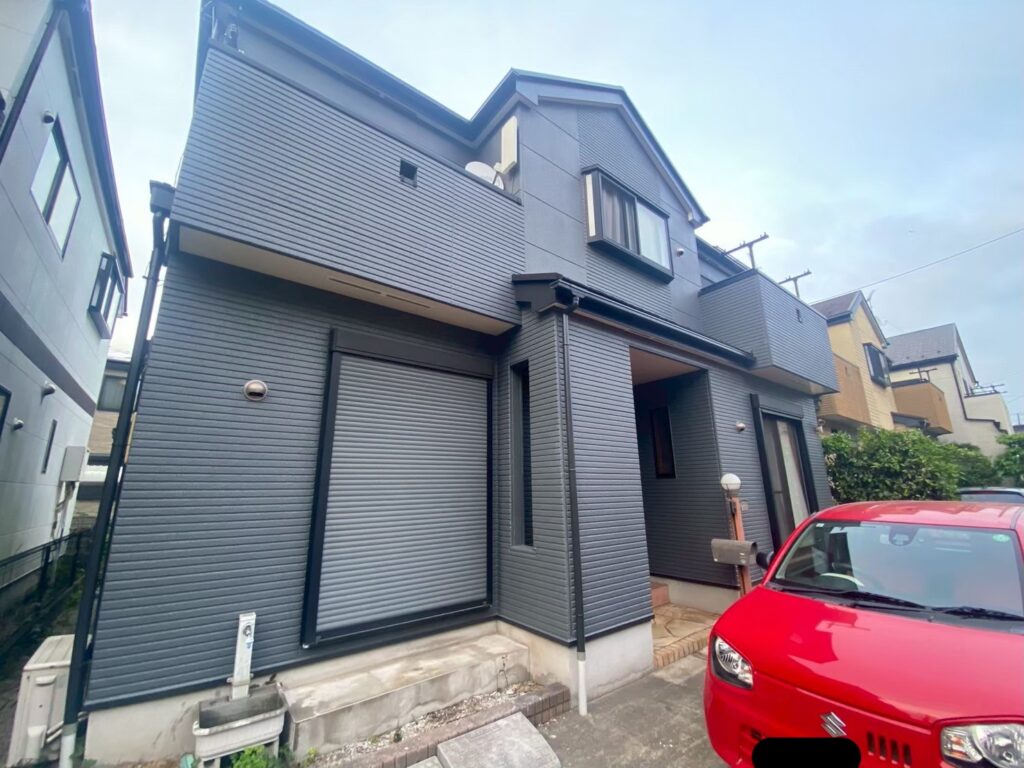 外壁は深みのあるダークグレー系カラーで塗装し、建物全体が引き締まった落ち着きのある外観へと生まれ変わりました。重厚感と高級感を感じられるモダンな仕上がりとなり、住宅全体の印象が大きく向上しています。フッ素塗料を使用することで耐候性や光沢保持性も高まり、美しい外観を長期間維持できる仕上がりとなりました。