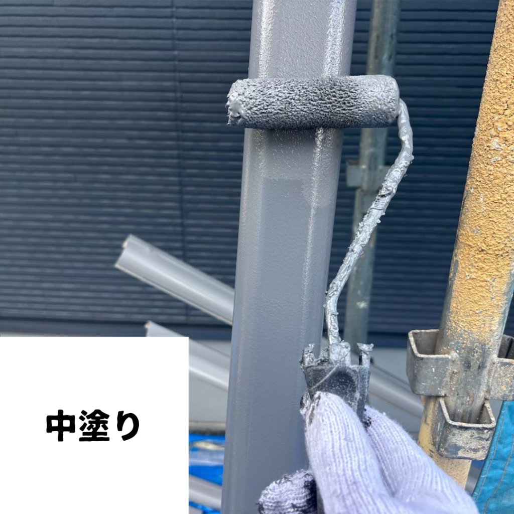 • 下塗り後、適切な乾燥時間を確保したうえで中塗りを行います。スリムダクトは取り外して塗装しているため、普段見えない裏側までしっかり塗布することができます。塗膜に厚みを持たせることで耐久性と仕上がりの美しさを高めています。