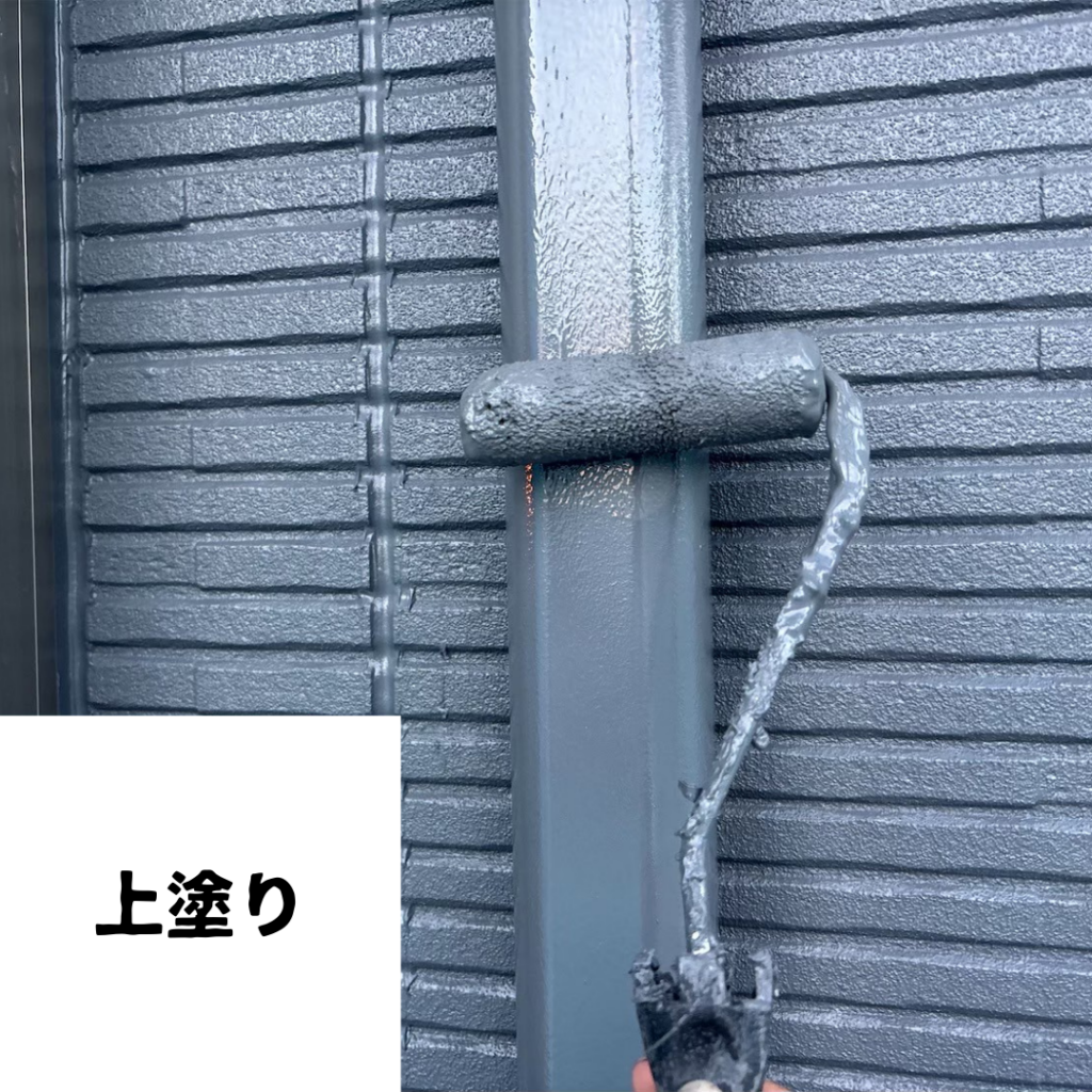 • 仕上げとなる上塗りを丁寧に施工し、色ムラのない美しい仕上がりに整えました。取り外して塗装しているため細部まで均一に塗装ができ、耐候性と美観をしっかり確保しています。最後に元の位置へ戻し、外観を綺麗に仕上げています。
