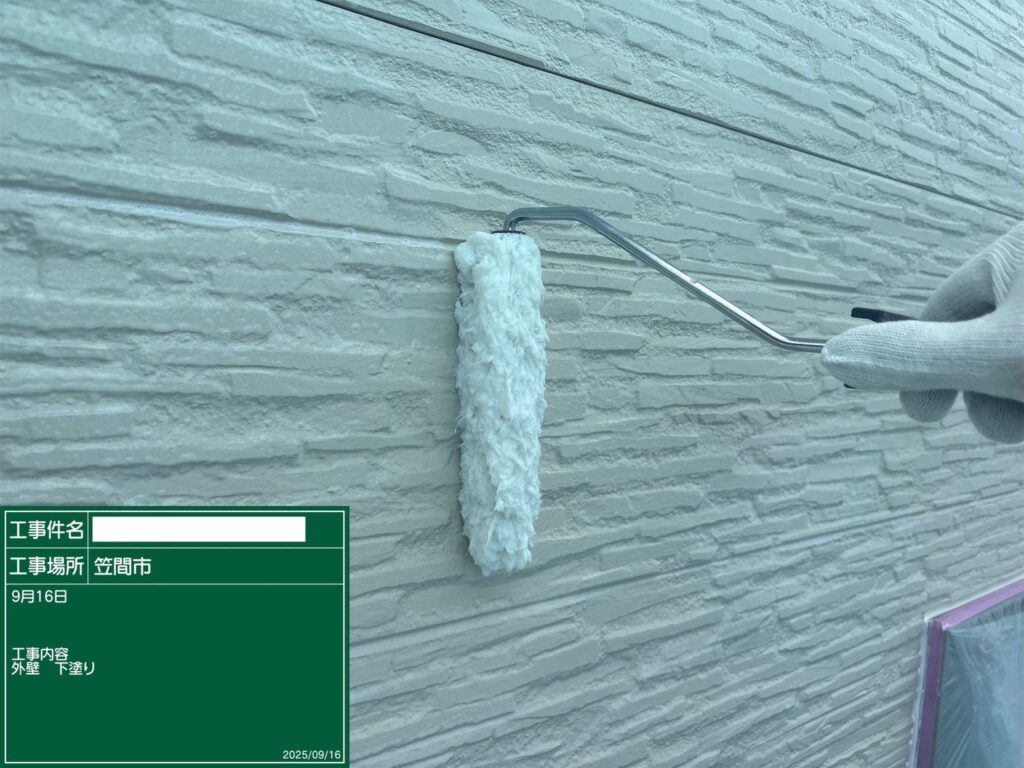 塗料の密着を高め、耐久性を上げるための「下塗り」を行います。