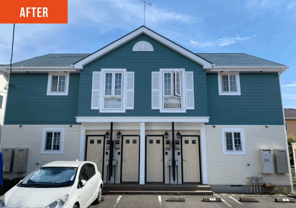 | 施工者コメント | アパートオーナー様より、外観の印象を一新して入居者を増やしたいとのご要望をいただきました。 そこで、上部には明るく爽やかなND-050、下部には落ち着いた印象のND-174を採用し、バランスの取れた外観に仕上げました。 清潔感と安心感を感じられる色合いで、内見時の第一印象を高めることを意識しています。 アパートの価値向上にもつながる外装リフォームとなりました。 |