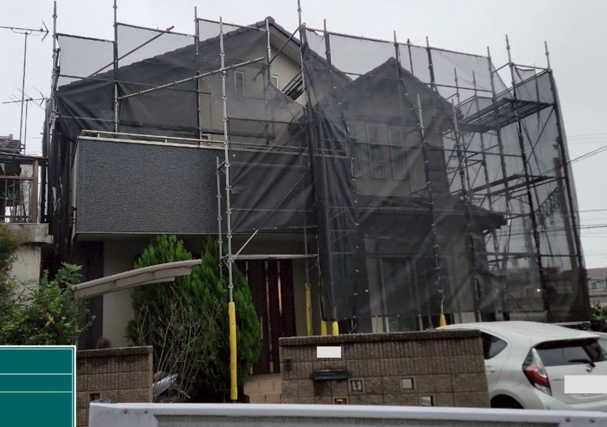 基本的に雨天時の屋外塗装は行いませんが、雨の影響を受けない場所であれば作業可能な場合もございます。
