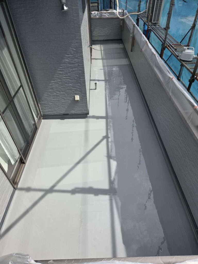 最後に、紫外線や風雨から防水層を守るためのトップコートを施工します。これは美観を整えるだけでなく、防水層の劣化スピードを大きく左右する重要な工程です。